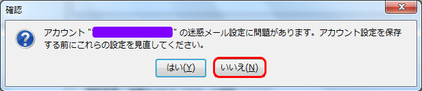 「確認」画面が表示される場合は[いいえ(N)]ボタンをクリックします。