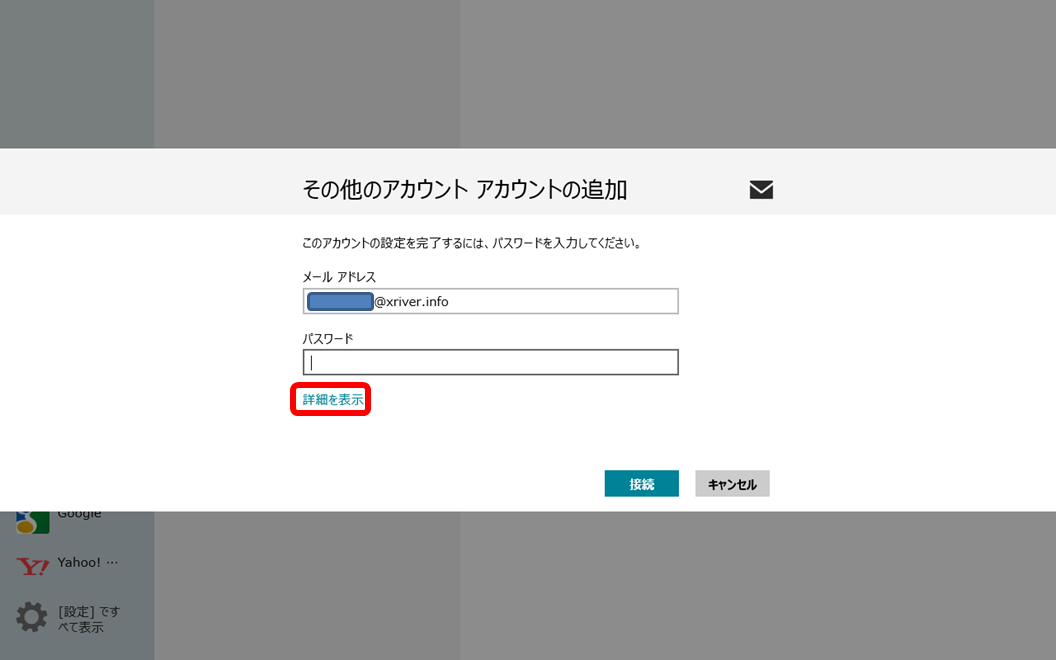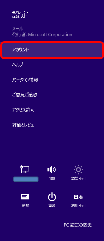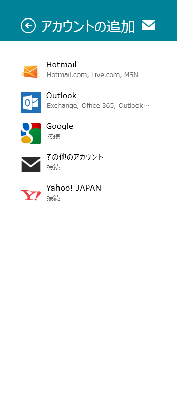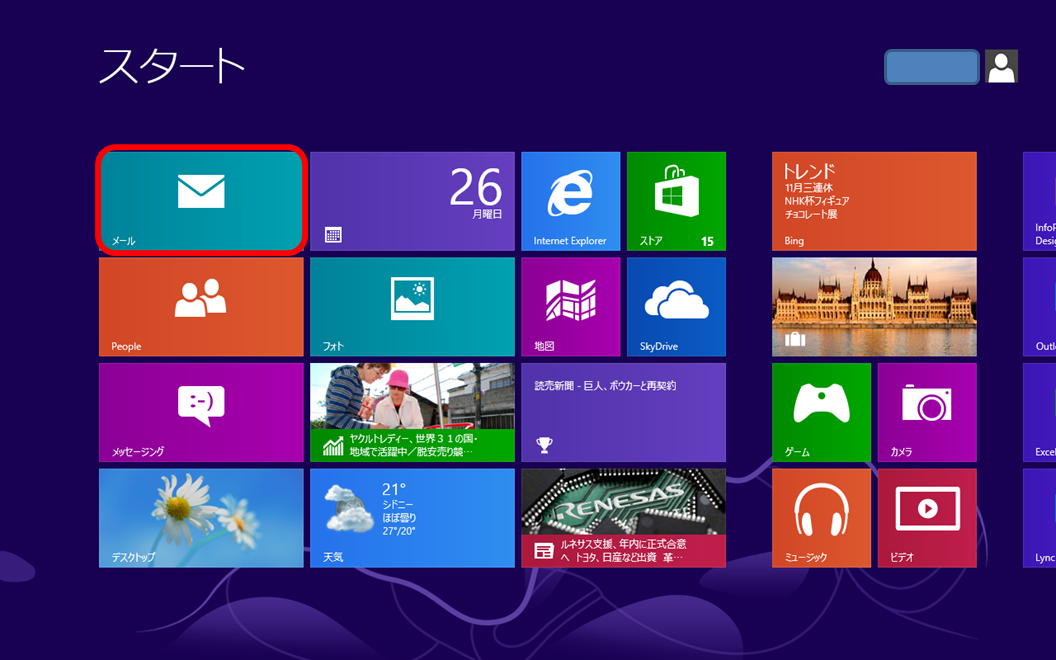 ※ Windows 8 Professionalにスタート画面にあるメールで接続できるかどうかを確認してみました。
