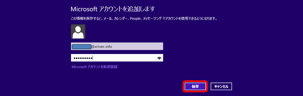 Microsoftアカウントを作成済みの場合はメールアドレスとパスワードを入力して[保存]ボタンをクリックします。