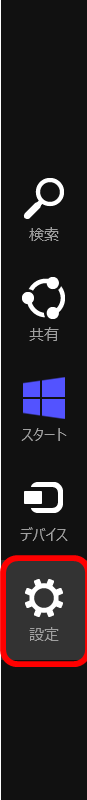画面右下にマウスを移動するか、[Windows]+Cキーでチャームを表示して、[設定]をクリックします。
